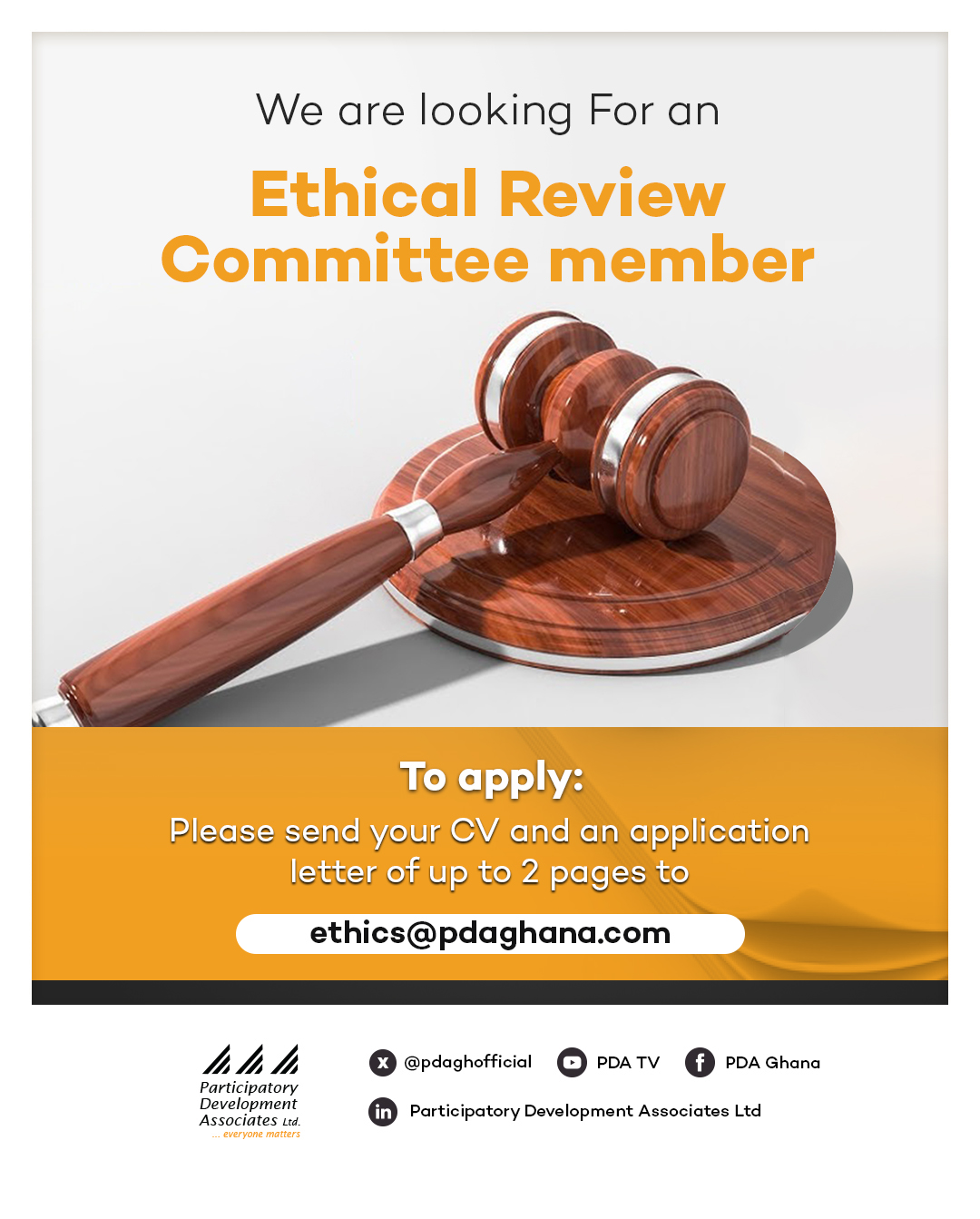 Please send your CV and an application letter of up to 2 pages to ethics@pdaghana.com